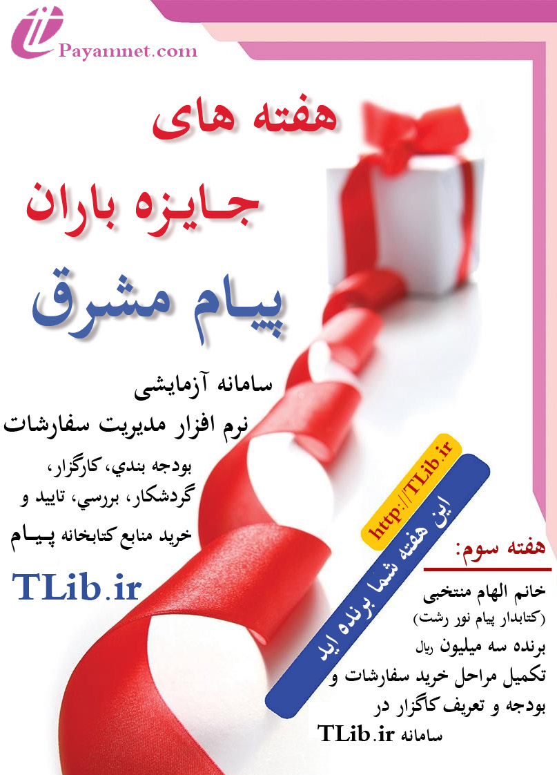 هر هفته يك نفر از كاربران سامانه آزمايشي نرم افزار مديريت سفارشات، بودجه بندي، گردشكار و بررسي، تاييد و خريد منابع كتابخانه پيام، برنده سه ميليون ريال وجه نقد خواهند شد.